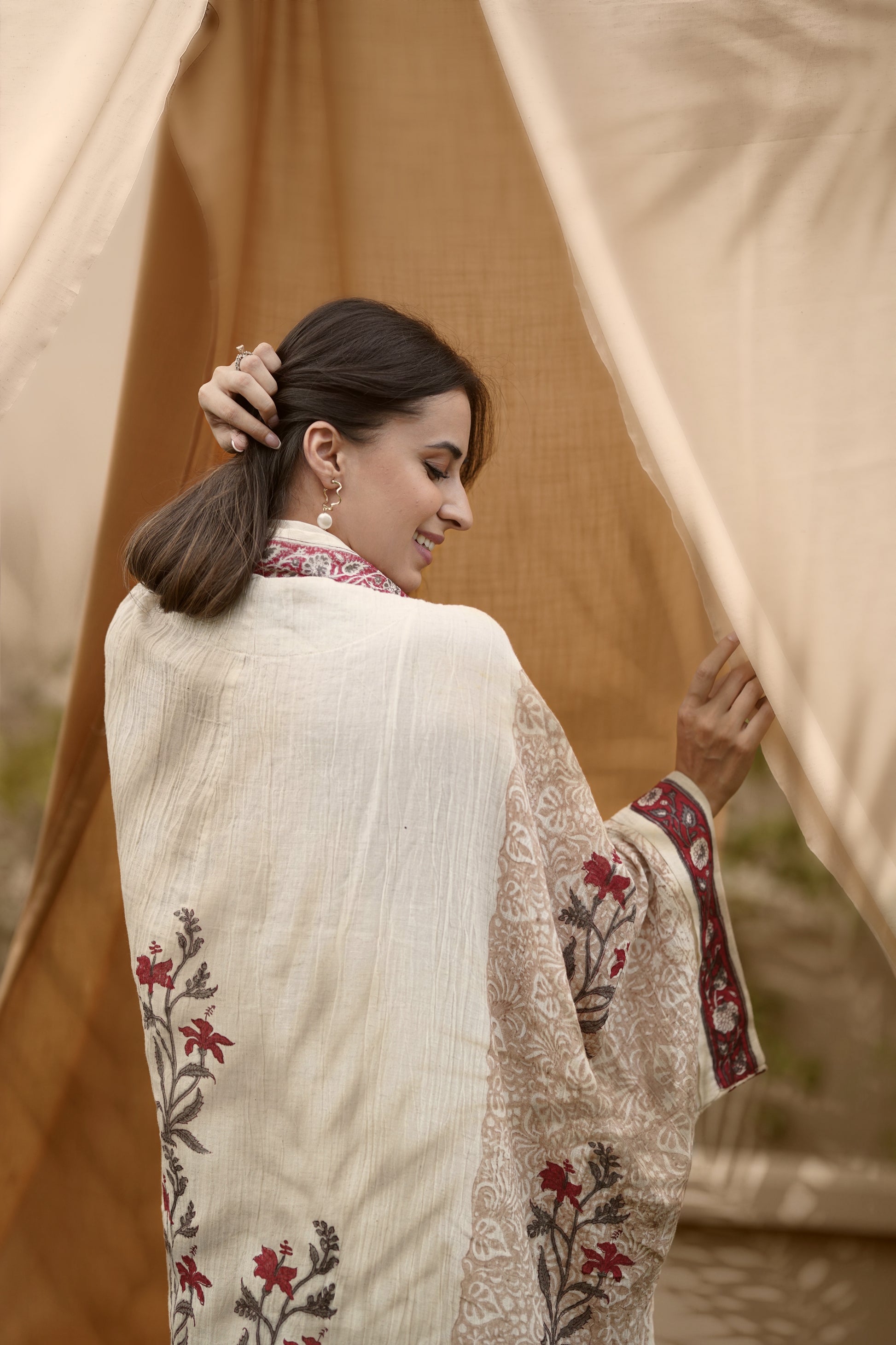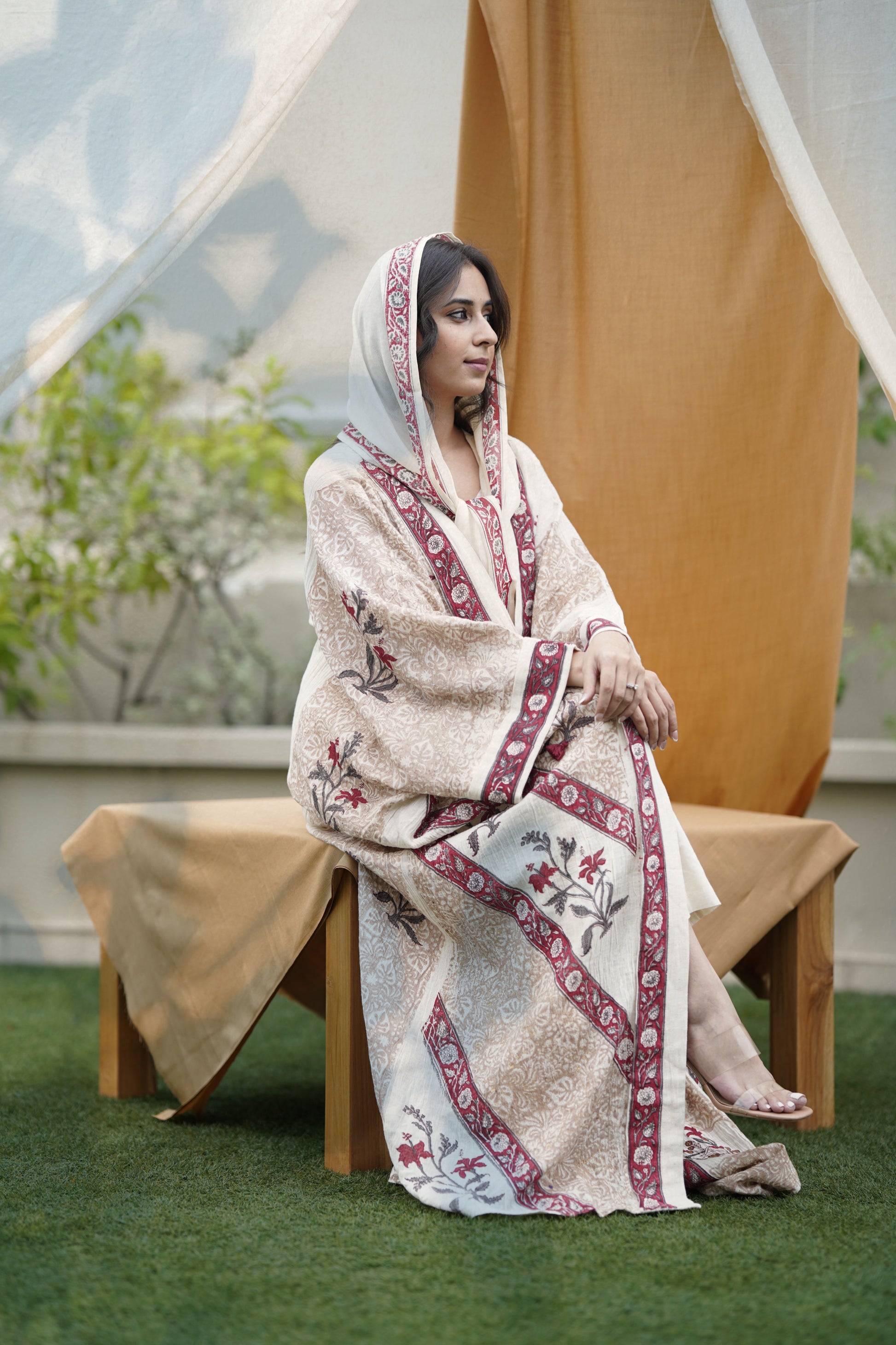 These are pure linen Abaya with an inner dress and scarf. The abaya, inner dress and scarf, all are hand painted by exclusive hand painting artisans in India. It is available in Bisht cut as well as regular cut. The fabric used is handmade and can be dry cleaned and steam ironed for its longevity. It is a classic summer abaya and allows easy breezy air to pass through it and making you feel comfortable and cool. They are very appropriate for office, vacation and formal wear.