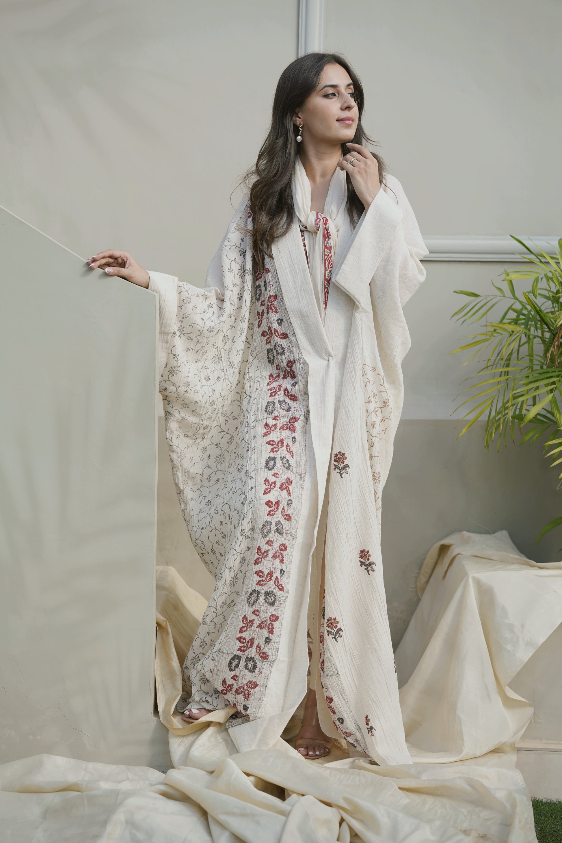 These are pure linen Abaya with an inner dress and scarf. The abaya, inner dress and scarf, all are hand painted by exclusive hand painting artisans in India. It is available in Bisht cut as well as regular cut. The fabric used is handmade and can be dry cleaned and steam ironed for its longevity. It is a classic summer abaya and allows easy breezy air to pass through it and making you feel comfortable and cool. They are very appropriate for office, vacation and formal wear.